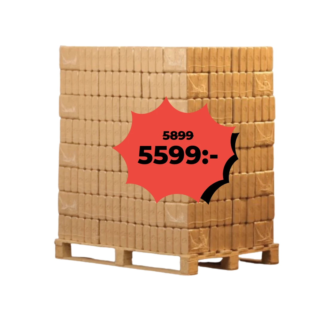 Högkvalitativa björkspånsbriketter, tillverkade av 100 % rena och naturliga björkspån, utan tillsatser eller kemikalier.