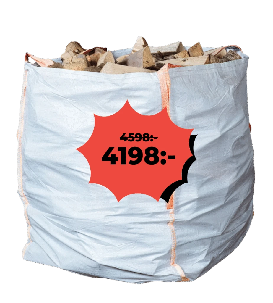 Torkad björkved i storsäck. 2st. per pall. 0.8 kubik stjälpt per storsäck.